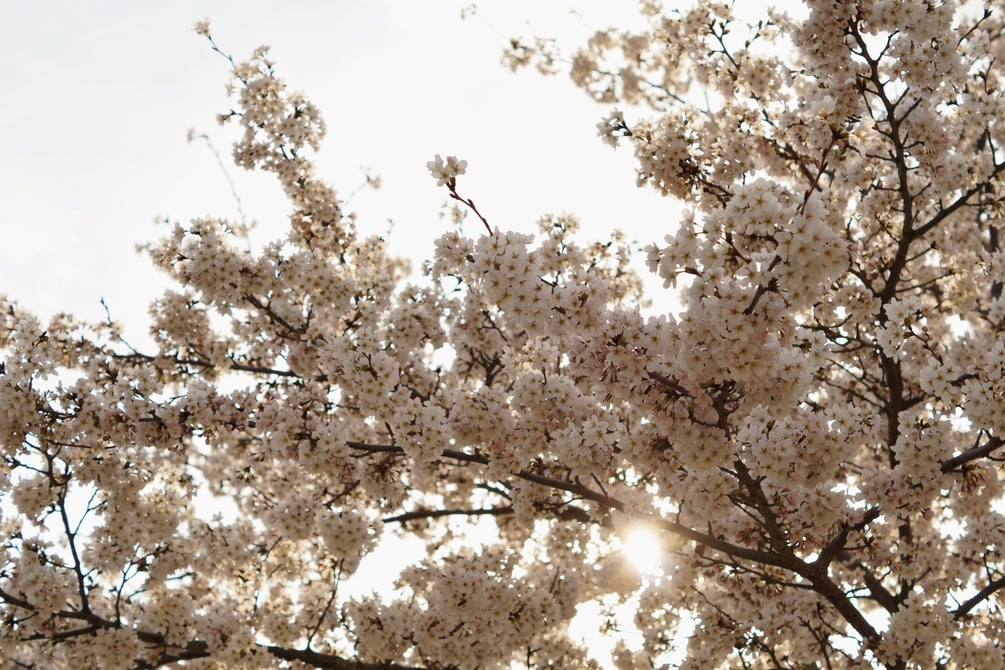 Beautiful cherry blossoms trees blooming in spring at the Bahnstadt farm fields in Heidelberg, Germany